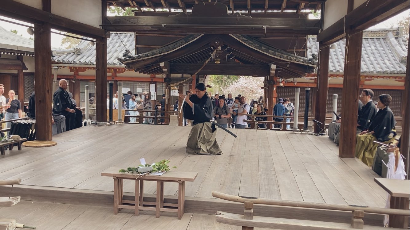 | 具体的な活動 ※他の居合道場との違い | ・奈良の伝統ある神社での奉納演舞に参加可能 ※下記動画参照 ・月1回の茶道教室を先生を招いて学びます。※自由参加 ・当寺のイベントに参加可能です ・刀について語り合い、深い学びが可能 ・大峯山参拝にも参加可能※男性のみ ・他に抜刀大会や、他流派との交流会にも参加可能 等 |